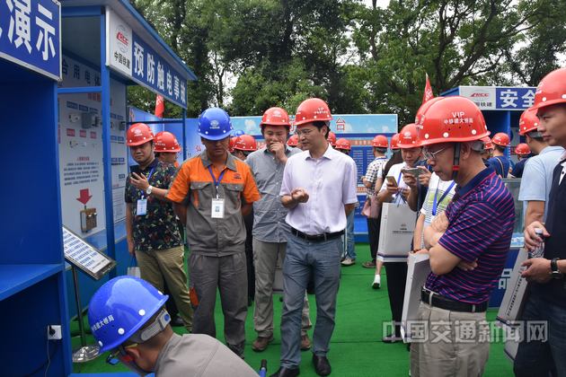 19日上午,全體與會(huì)人員乘車來到廣吉高速公路C5標(biāo)的安全體驗(yàn)館和預(yù)制梁場、C3標(biāo)的泰和北贛江特大橋水上作業(yè)現(xiàn)場觀摩。在C5標(biāo)安全體驗(yàn)館內(nèi),觀摩人員在聽取講解后,還不忘親身體驗(yàn);在預(yù)制梁場,不少業(yè)內(nèi)同行常常駐足在滾焊機(jī)、龍門吊液壓自動(dòng)夾軌器、不銹鋼模板、多媒體安全培訓(xùn)工具箱前;在泰和北贛江特大橋水上作業(yè)施工現(xiàn)場,觀摩人員不由地對文明施工現(xiàn)場發(fā)出陣陣贊嘆。一位長期分管交通工程質(zhì)量安全監(jiān)管、幾乎跑遍全省重點(diǎn)公路水運(yùn)工程的負(fù)責(zé)同志深有感慨地說,今天,我在這里看到了很多“第一次”:第一次看到能讓一線作業(yè)人員在“游樂式”的環(huán)境中體驗(yàn)到安全風(fēng)險(xiǎn)從而增強(qiáng)安全防范意識的安全體驗(yàn)館,第一次看到高速公路項(xiàng)目特大橋施工現(xiàn)場采用門禁系統(tǒng),第一次看到鋼棧橋臨時(shí)用電使用輕質(zhì)絕緣的PVC材質(zhì)線槽,第一次看到涵洞基坑設(shè)置臺階和上下扶手,第一次看到氧氣瓶配上了輕巧的小推車,第一次看到檢查T梁的移動(dòng)樓梯...更可貴的是,這些“第一次”,廣吉項(xiàng)目已全線推廣,屢見不鮮。