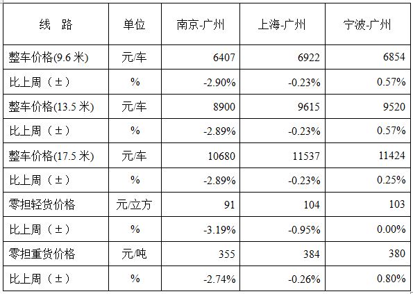 表1 本周部分線路平均價格及環(huán)比情況對比