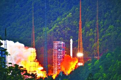 4月12日19時(shí)04分,我國(guó)實(shí)踐十三號(hào)衛(wèi)星在西昌衛(wèi)星發(fā)射中心由長(zhǎng)征三號(hào)乙運(yùn)載火箭成功發(fā)射。新華社發(fā)(葉樂(lè)峰 攝)