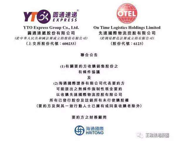 先達(dá)國(guó)際物流(4,0.00,0.00%)(06123-HK)公布,董事會(huì)建議將公司英文名稱由‘On Time Logistics Holdings Limited’更改為‘YTOExpress (International) Holdings Limited’及將公司中文雙重外文名稱由‘先達(dá)國(guó)際物流控股有限公司’更改為‘圓通速遞(國(guó)際)控股有限公司’。